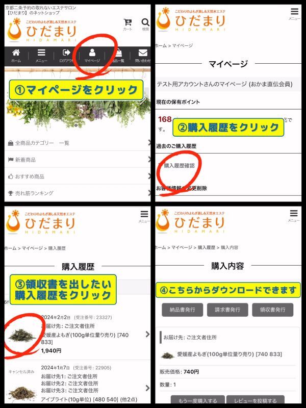 2024.2.13(火)ご注文分より、ご自身のマイページより領収書データをダウンロードしていただきますようお願い致します。