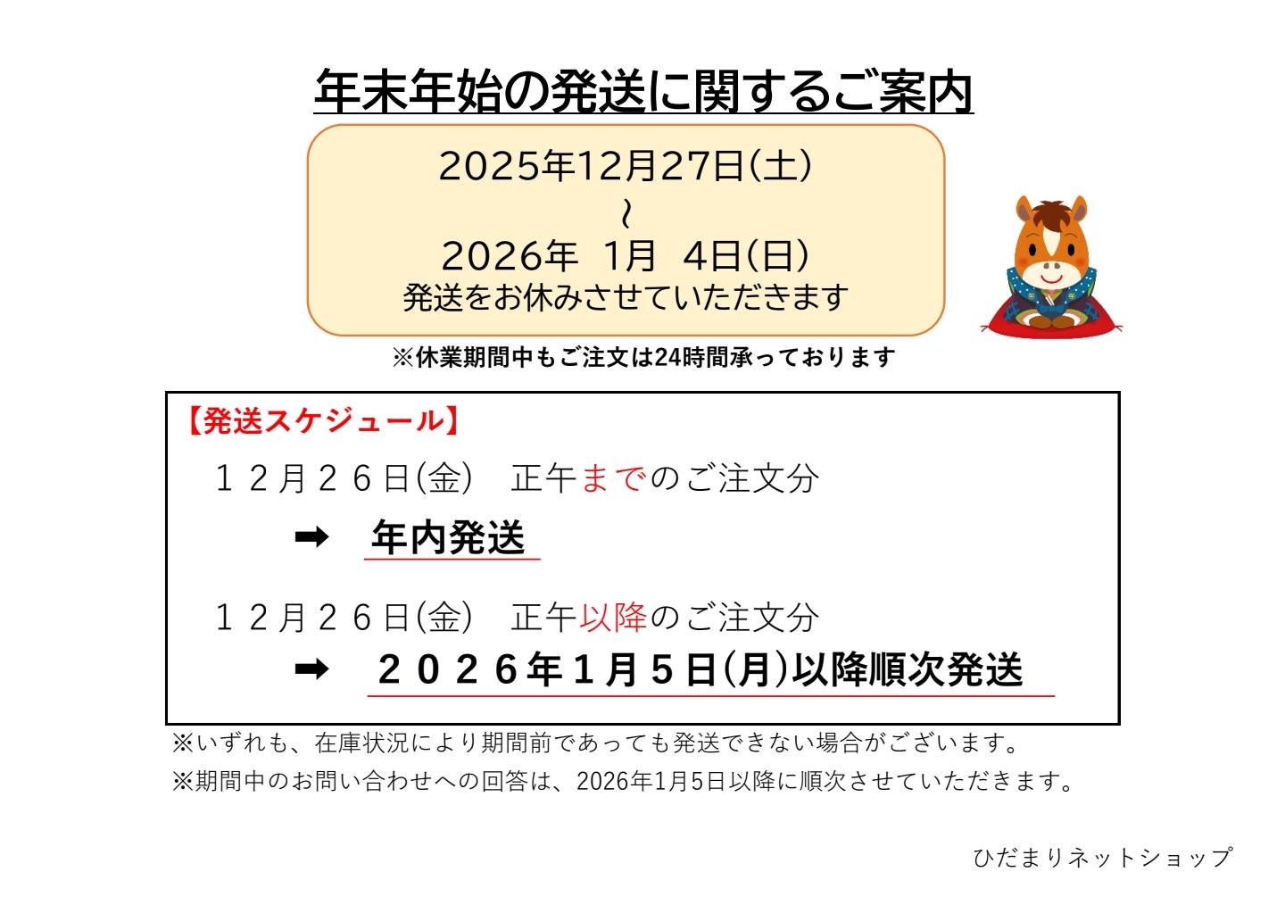 年末年始の発送に関するご案内